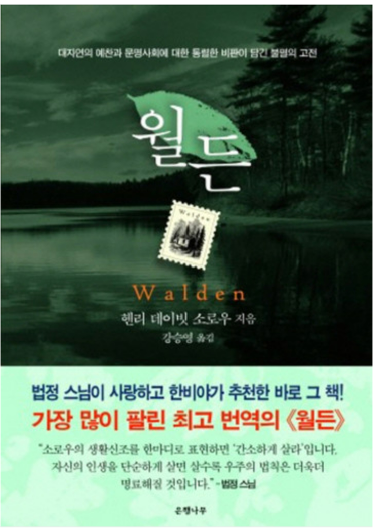 1993년 초판 번역본이 나온 이후 출판사 은행나무에서 54쇄를 찍어 약 30만부가 팔렸다고 한다. (2011년 기준) 강승영님의 번역을 위한 지극한 <월든>사랑과 소로우에 대한 예찬을 확인할 수 있다. 자연주의 사상과 함께 출세지향주의, 신자유주의의 물결 속에서 진정한 삶의 가치를 발견하고자 하는 사람들이 으뜸으로 손꼽는 책이라고 한다. 어쩌면 노장사상을 겸비하고 있다고 보인다. 공자는 사회관계 속에서 자신의 삶의 가치를 발견하는 데에 중점을 두고 인(仁, 사랑)을 말했다면 노자와 장자는 개인이 행복해야 관계가 있다고 보았다. 소로우는 그런 면에서 노자와 장자와 맥을 같이 하고 있다. 좋은 책을 미루고 미루어서 읽었다. 각 장마다 새롭게 구성되어 있어서 어떤 장을 펼쳐도 읽기의 맥락을 끊지 않는다. 오래 읽고 싶은 책이다. 책에 낙서를 해 가면서 읽었다. 헌 책방에서 산 책이라 부담 없이 낙서를 했다. 온전히 소유해 본다. 이 책. <월든>