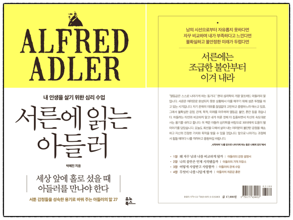 아들러는 오스트리아 출신으로 빈대학을 연구하여 안과의사가 되었으며 심리치료사, 개인심리학의 창시자로 불린다. 몸이 약했던 아들러는 신체의 건강과 심리의 관계, 트라우마, 내면아이, 감정 등에 주목했다. "완벽한 어른도 완벽한 아이도 없다"라고 말하는 아들러는 "열등감은 스스로 나아가게 하는 동기다"라고 보았다. 또한 '감정은 어떤 의미가 있을 때 나타나고 삶의 방식이나 행동 패턴에 상응한다. 죄책감은 자기중심적 심리에서, 분노는 인정 욕구. 지배욕구에서, 억울함. 원한은 존중욕구에서 발현된 것으로 모두 자기 열등감의 극복 욕구에서 기인한다고 말했다.